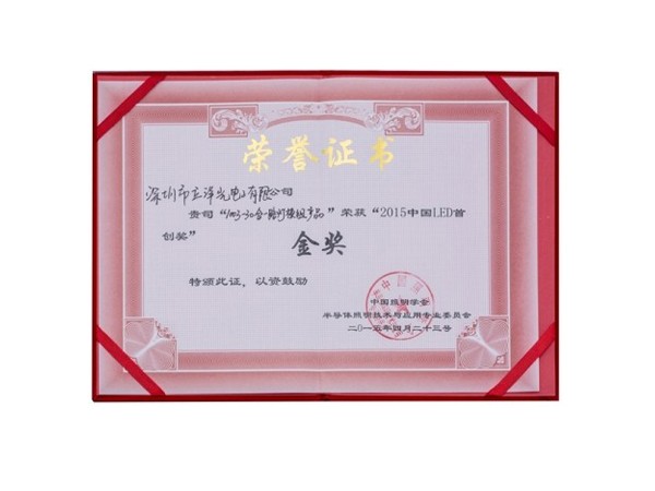 “2015中国LED首创奖”金奖荣誉证书