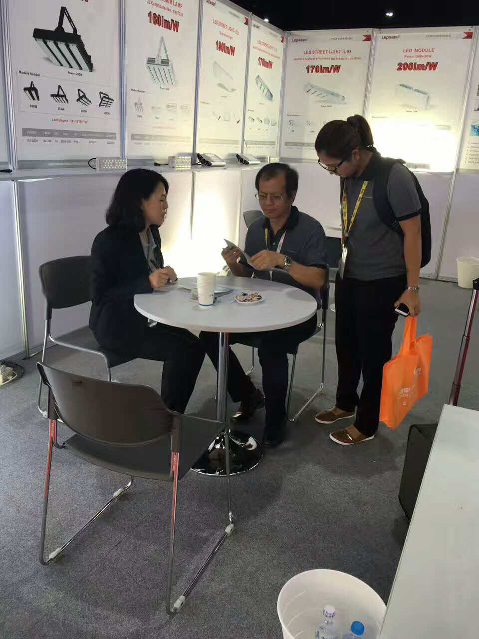 既然是第二次参加泰国展,总少不了老客户的身影;这不,听说立洋股份又出新品了,光效还奇高,这位老客户都迫不及待地自己动手要解剖这个神奇的东东来瞅一瞅…