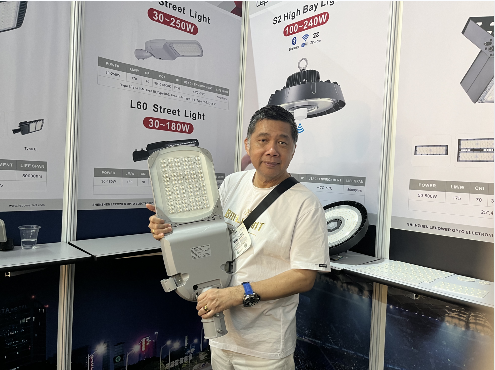 马来西亚是“一带一路”发展的重要节点,由于LED路灯具有更低的能源成本和更长的使用寿命,被越来越多的城市采用。立洋光电本次展会重点展示LED路灯,LED路灯作为节能环保的照明产品,具有高效节能、寿命长、安装方便等优势,受到越来越多城市的青睐,备受参观者的关注。