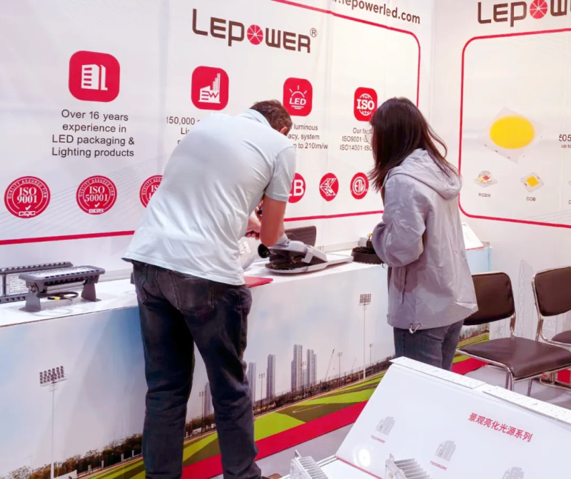 展会现场销售团队们与全球参观者深入交流,分享最新的行业动态和技术趋势,充分展示了公司在LED照明领域的专业实力和服务水平。公司以稳健、可靠的姿态,展示了在照明行业的领导地位,并传递了公司对于绿色照明和可持续发展的坚定信念。