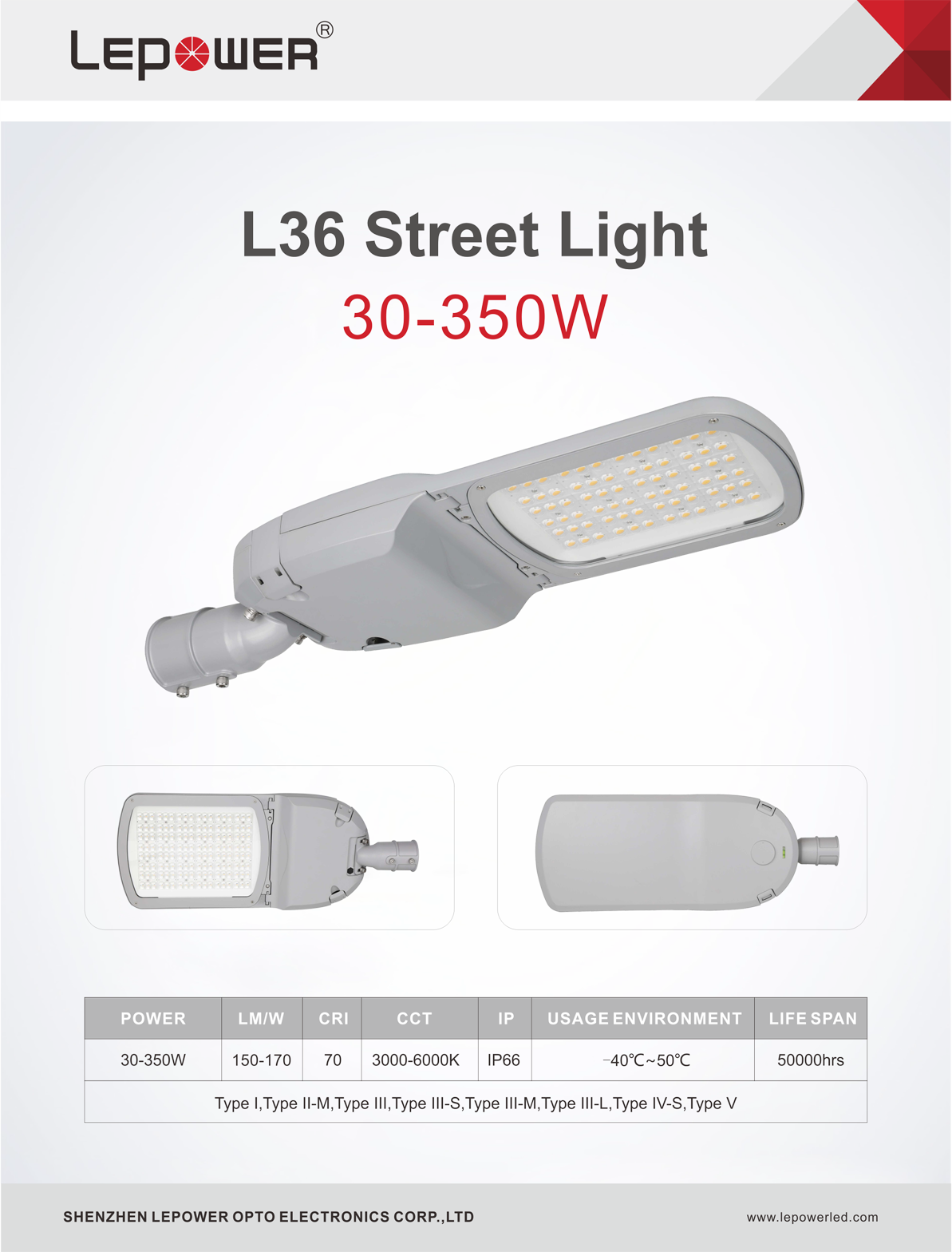 L36路灯双碳战略下的节能先锋,灯具采用高光效5050光源,性能稳定,光源发光效率高达230LM/W,可满足客户定制化需求。功率范围30W至250W,支持光控调光系统,进一步降低能耗,适用于不同的照明项目。