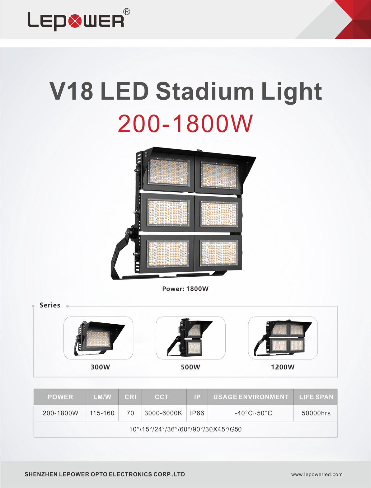 LED球场灯系列,满足国际赛事照明。立洋光电深耕体育照明领域,推出V18与V20两款球场灯,以高均匀度、低眩光与智能调光技术,满足从社区球场到国际赛事的多元化需求。