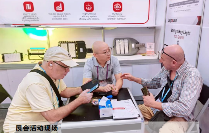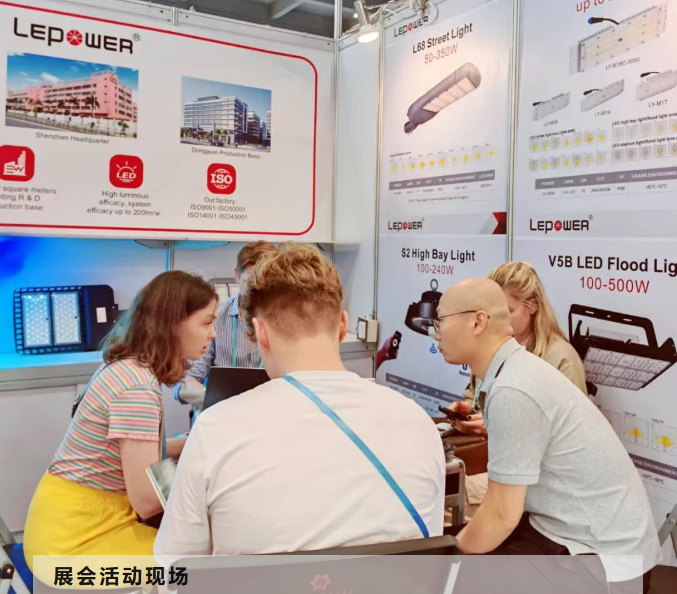 活动现场,产品凭借着优秀的散热、超高的光效等特点,受到众多国际观展商的青睐,公司团队们与现场咨询者进入了深入交流。