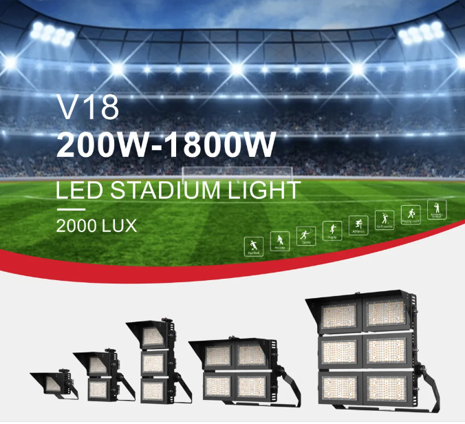 体育照明领域,V18与V20球场灯为专业体育场馆提供精准照明支持。具备高显色指数、精准光束控制与高照度均匀性,支持智控模式调节,灵活适配足球、篮球等多种赛事照明需求,实现功能性与观赏性的完美融合。