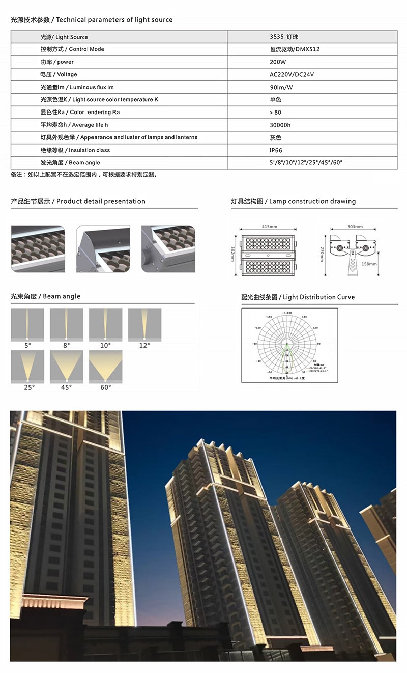 · 配 光:透镜采用日本帝人光学级PC原 料, 高密度的模具加工工艺, 光斑均匀度0.92,眩光值UGR8,