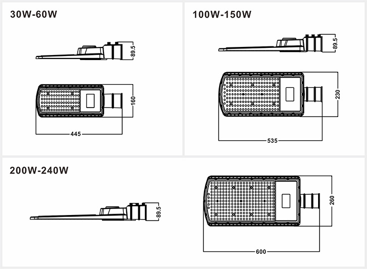 LED路灯L63采用高品质压铸铝合金设计外壳,功率范围为30W至200W,重量轻且散热效果好,超薄设计路灯经济实惠以及节省成本的产品,为大多数人提供了一种非常经济高效的解决方案城市道路照明。