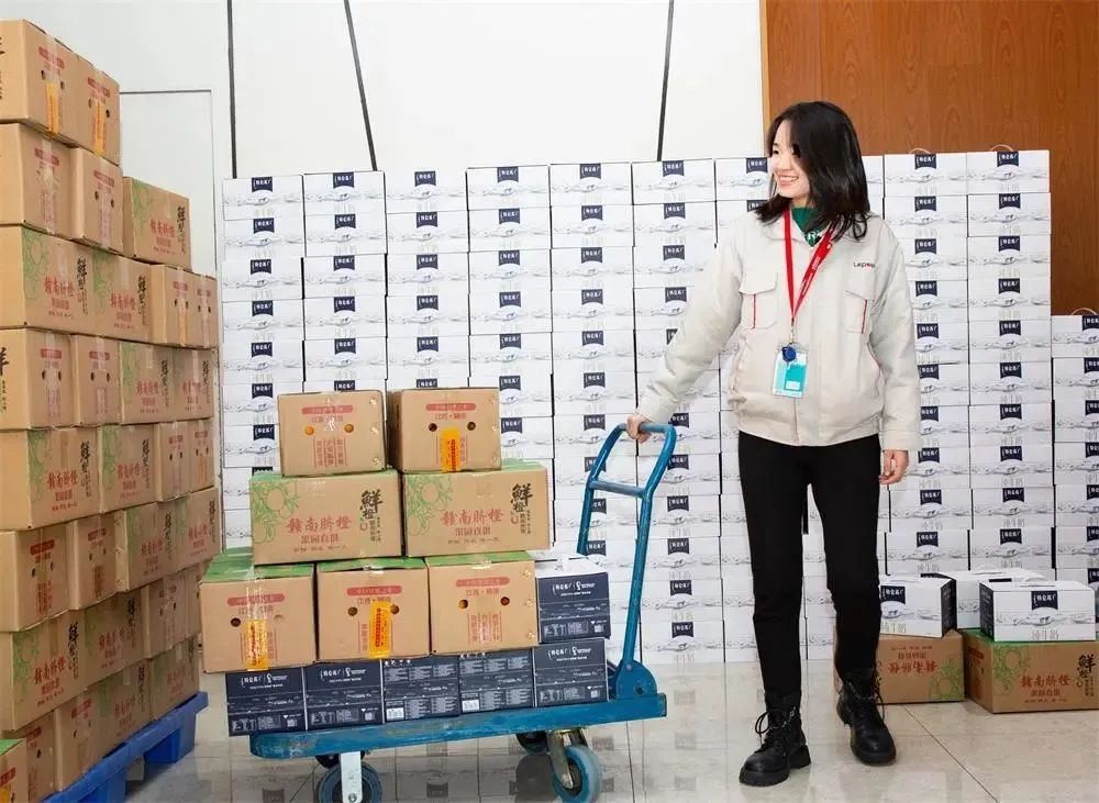 一箱箱承载着公司关怀的福利品传递到员工的手中,寄托着公司对每一位员工及家属深深的惦记与牵挂。发放现场洋溢着一片幸福和谐的笑容,这就是寒冬中最温暖的写照。