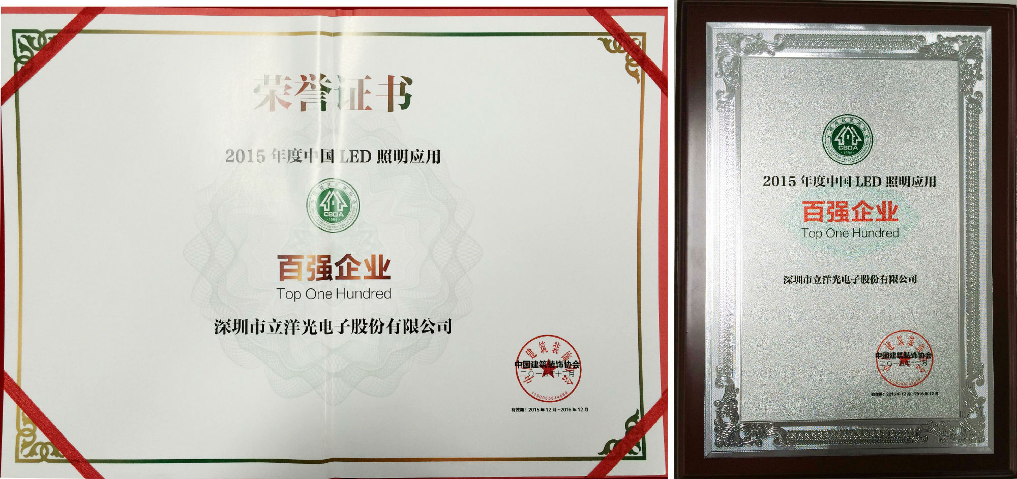 贺:立洋光电荣获“2015中国LED照明应用百强企业”!