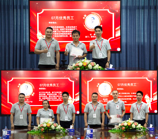 本次优秀员工分别来自公司照明生产部和器件生产部基层岗位,每位获奖者都收到了公司颁发的荣誉证书和奖金,以表彰他们在岗位上的杰出表现和卓越成就。