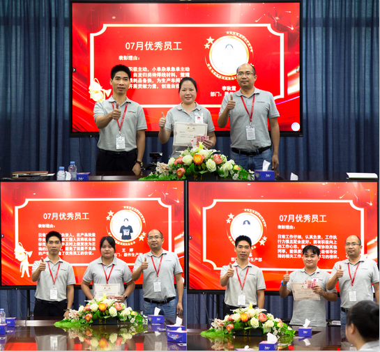 星光不问赶路人,时光不负有心人,付出终有回报!近日公司为感谢制造系统优秀员工的辛勤付出,特举行颁奖盛典进行表彰。7月,公司涌现一批优秀基层员工,他们不辞辛劳,全力以赴的,在岗位上尽职尽责。公司在总部对这些优秀员工召开表彰大会,感谢他们的勤勤恳恳,激励他们继续努力、追求卓越,并号召所有员工向他们学习!