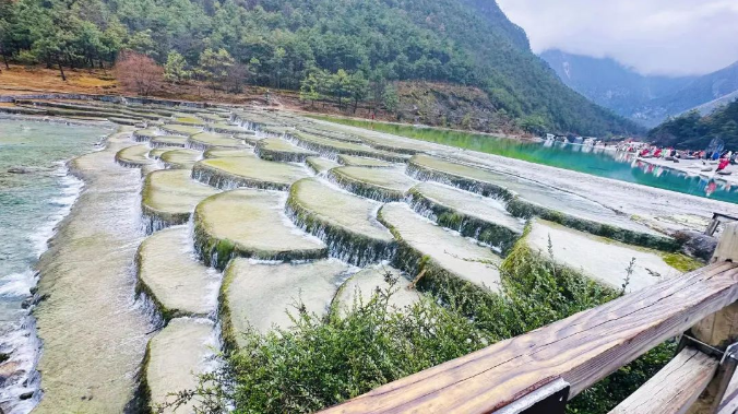 玉龙雪山下,有一个美丽的湖泊——蓝月谷,被誉为“云南的九寨沟”。蓝月谷湖水清澈透明,呈现出梦幻般的蓝色,远山、白云、绿树都倒映在湖水中,给人一种置身于仙境的感觉,在这里,团队成员尽情享受了大自然的美丽。