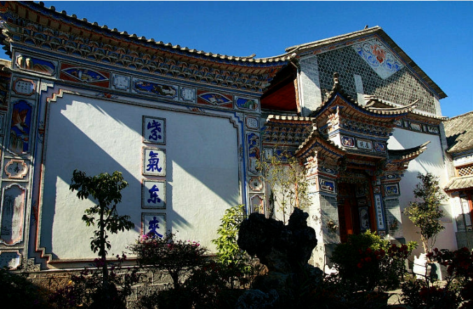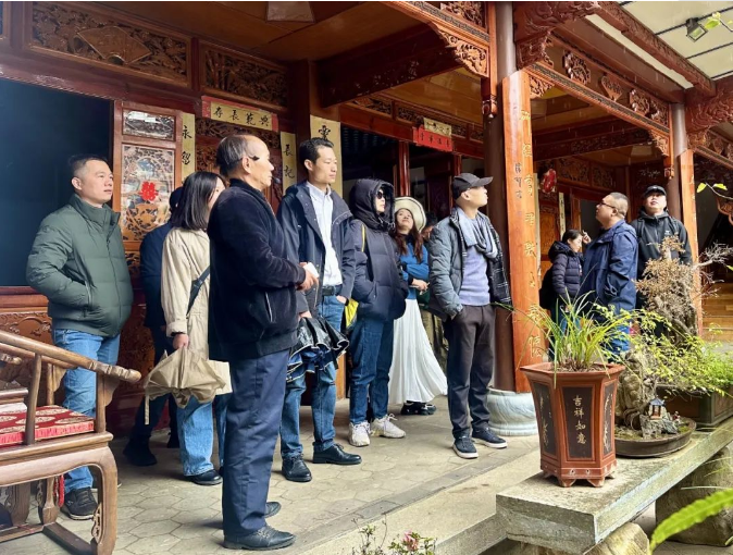 白族大院是一个具有传统文化特色的建筑,是云南大理地区的一种传统建筑形式,具有浓厚的地方特色和民族风情,白族大院由石头和木材建成,雕刻精细,色彩斑斓,团队成员纷纷惊叹白族大院建筑工艺的精湛,景仰当地特色文化瑰宝。