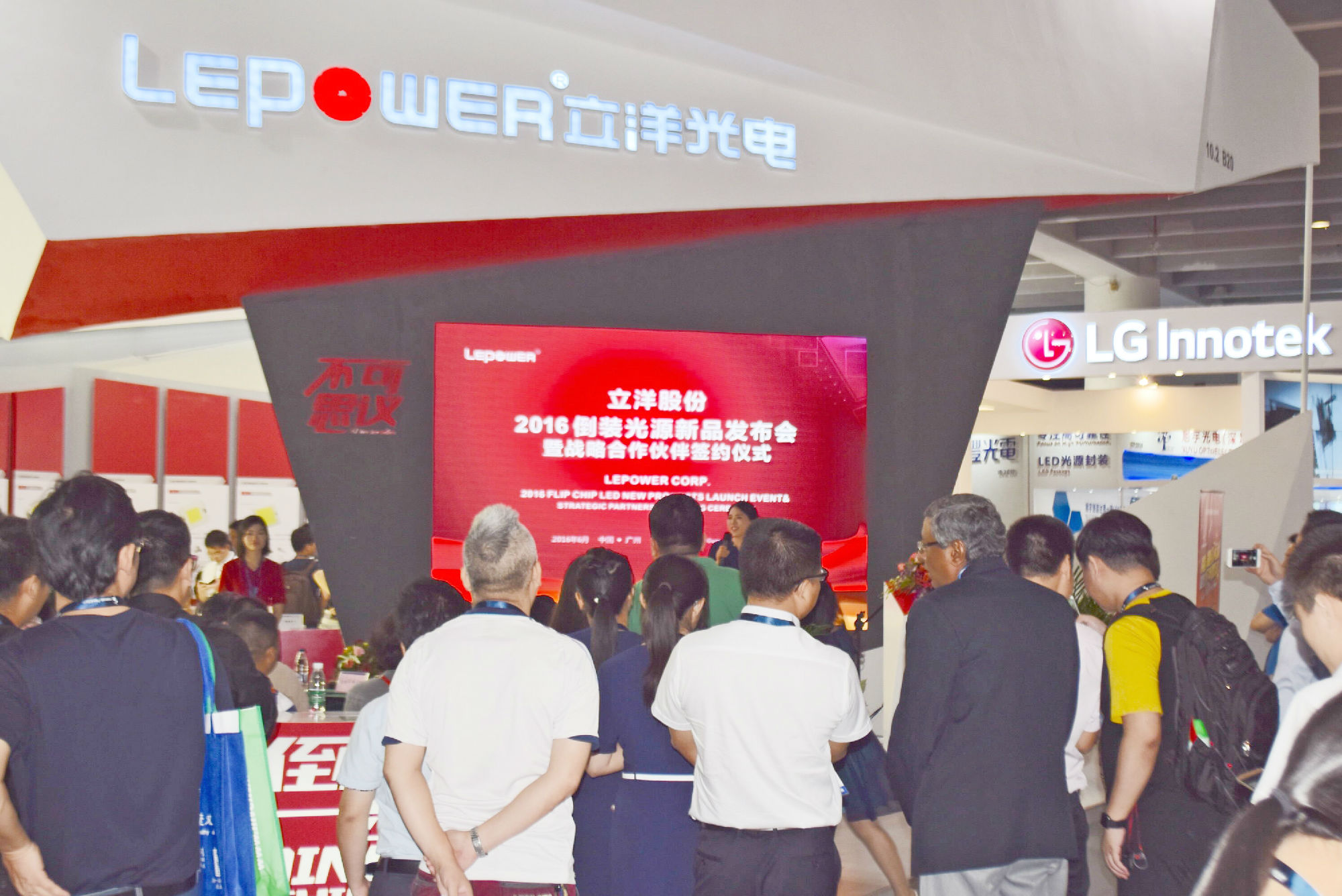2016年6月10日,“立洋股份2016倒装光源新品发布会暨战略合作伙伴签约仪式”在广州琶洲展馆立洋展位(10.2号馆B20)盛大召开。立洋股份总经理秦胜妍女士、副总经理尹舜朋先生,携手美国普瑞光电亚太区总裁文健华博士、德豪润达芯片事业部副总裁莫庆伟博士、天午科技副总经理杨华新先生出席本次发布会,同时本次发布会还有幸邀请到中国照明学会半导体专业委员会赵飞秘书长及中国建筑装饰协会曾官生主任莅临。