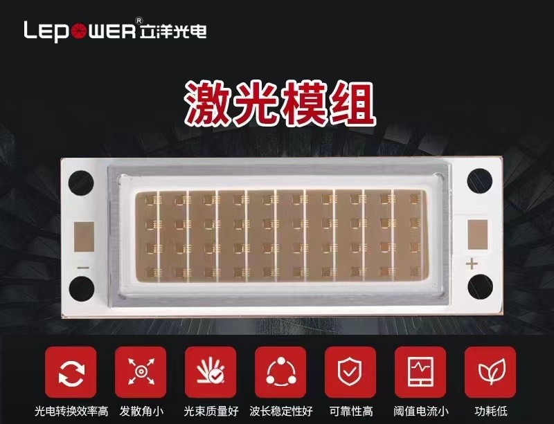激光模组波长808nm,有可靠性高、波长稳定、光谱窄和热阻低等特点。出光功率高达120W,高功率密度可以减小封装尺寸,优化系统架构,在诸如消费电子的高容量应用市场,具有更显著的成本效益。
