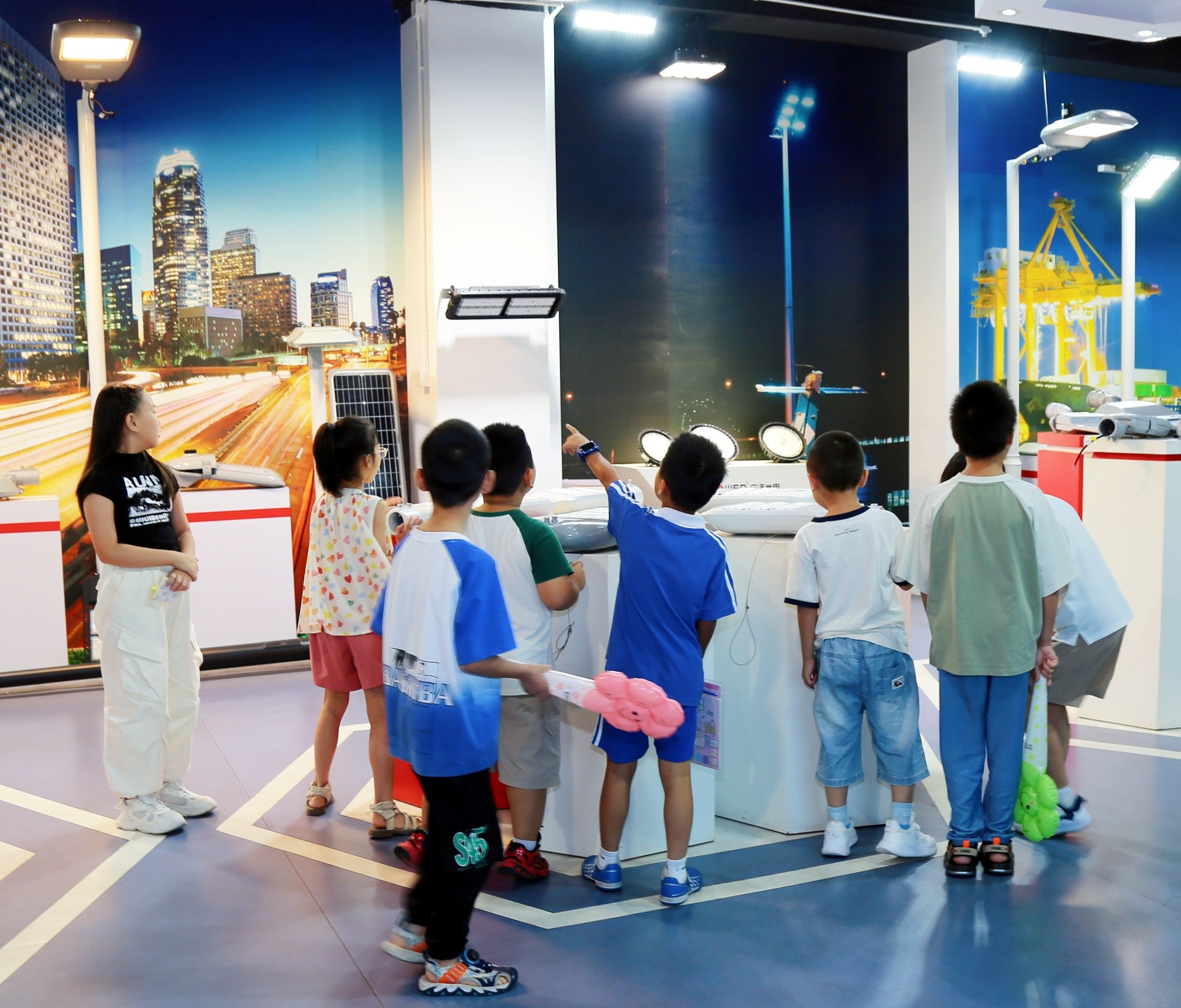在封装研发中心,小朋友们被各种先进的实验设备和科研成果所吸引,不时提出各种有趣的问题。研发人技术员耐心地为孩子们解答,用简单易懂的语言讲解着光源发光原理和应用,激发了小朋友们对光的浓厚兴趣。