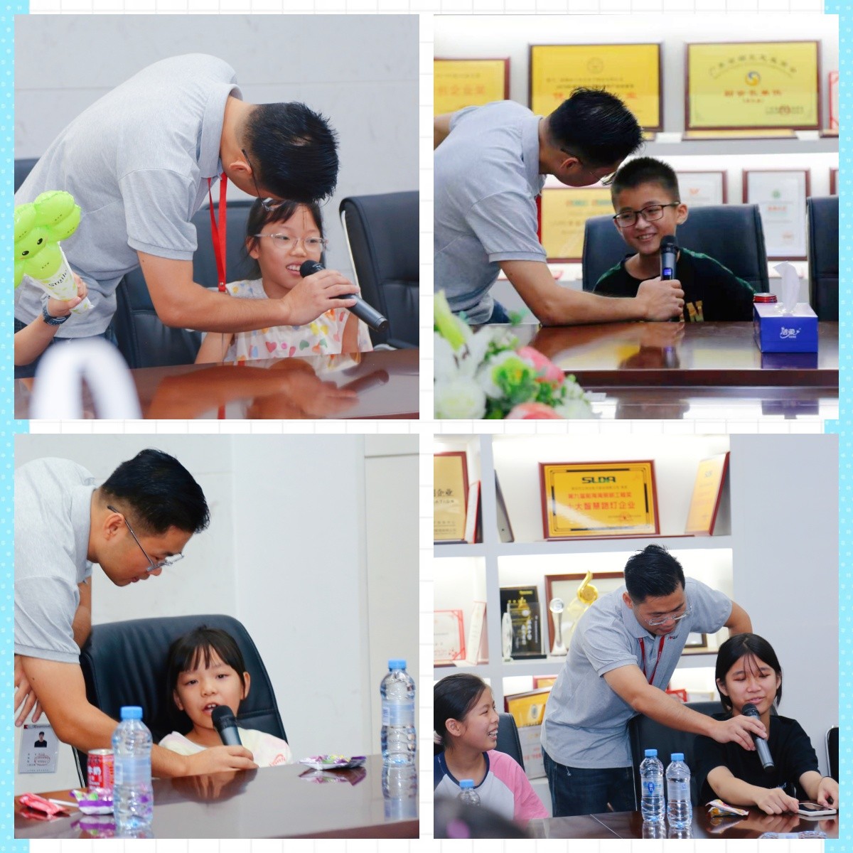走进生产车间,整齐排列的生产线和忙碌而专注的立洋人让小朋友们大开眼界,他们亲眼目睹了爸爸妈妈平时工作的地方,对自己爸妈的工作有了更深刻的认识。一个小朋友看着展厅展示着各种LED照明灯具,眼中满是好奇,说:“平时爸爸总说在‘追光’,今天我终于看到他工作的地方啦!”