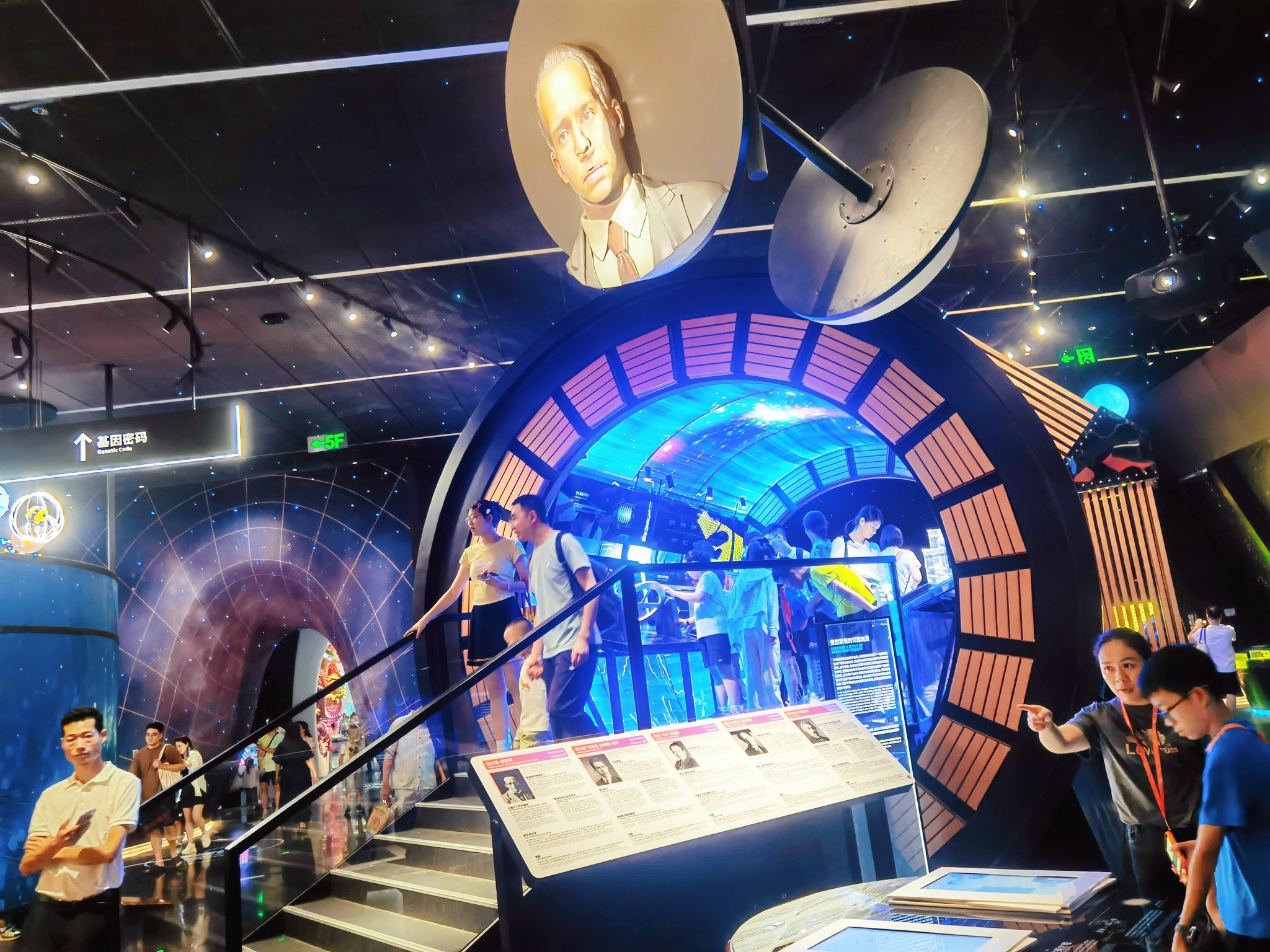 一顿美食过后,公司带领大家参加了“探索深圳科学技术馆新馆”,场馆以“大飞船”为灵感,一进门就被巨型的五星红旗震撼到!馆内小朋友们通过互动装置体验光的折射原理,感受数字技术对影像的革新,聚焦天文、航天、基因等前沿科学,探索了极微观与极宏观世界。