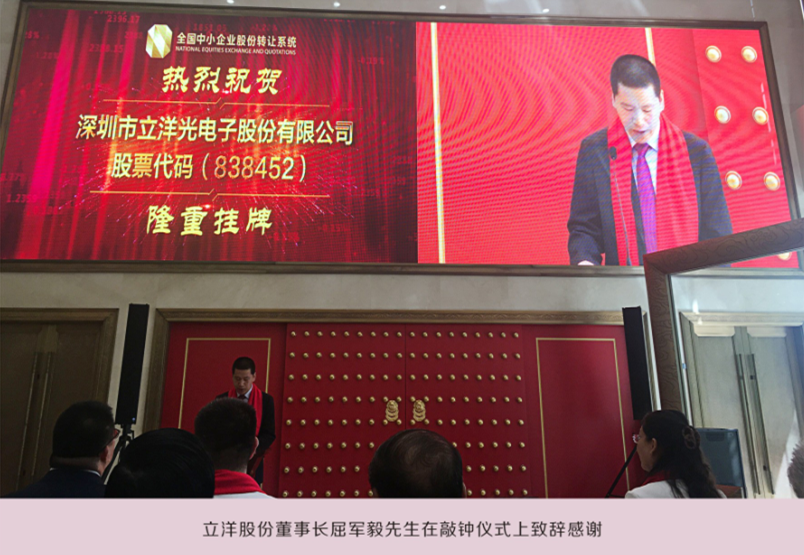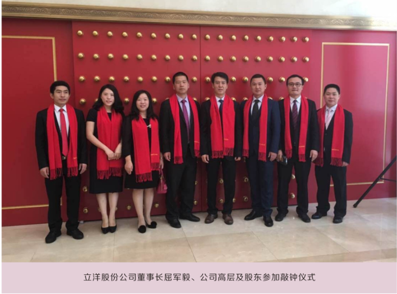 立洋股份公司董事长屈军毅携公司高层及其他投资人代表、共同出席了敲钟仪式,共同见证了立洋股份在资本市场的里程碑事件。