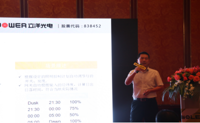 (立洋股份董事长屈军毅先生讲解智能控制路灯技术)