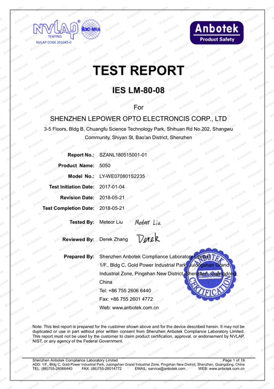 喜讯!立洋股份5050产品取得LM-80标准12000小时测试报告