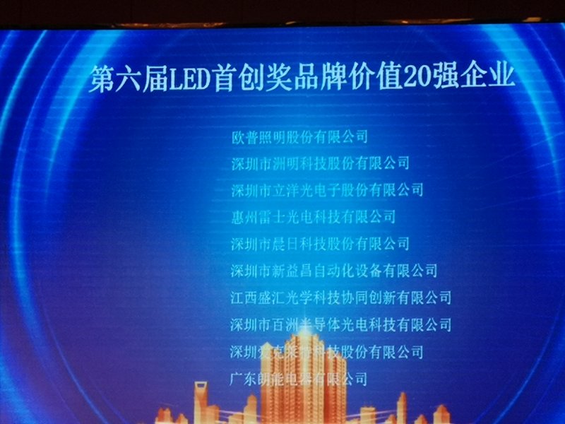 匠心品质铸品牌∣立洋股份荣获第六届中国LED首创奖“品牌价值20强”