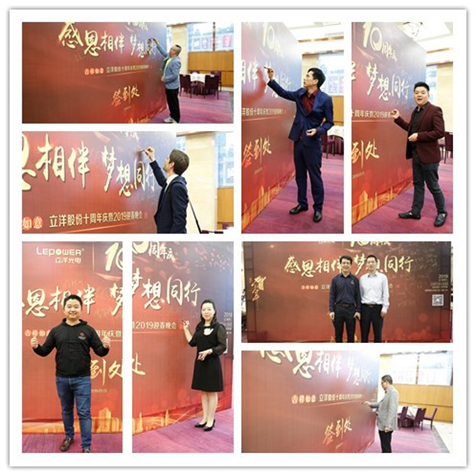 本次晚会群英荟萃,到场的嘉宾有:深圳市茂硕电子科技有限公司副总经理吴春晓先生,深圳市照明与显示工程行业协会秘书长赵飞先生,成都恒坤光电科技有限公司董事长霍永峰先生,美国普瑞光电有限公司高级副总裁文建华先生,欧司朗光电半导体有限公司代表余永胜先生,艾欧创想智能科技有限公司总经理凡魏先生等多位业界人士,以及社会各界关心支持立洋股份的朋友们,共同见证着这一历史时刻。