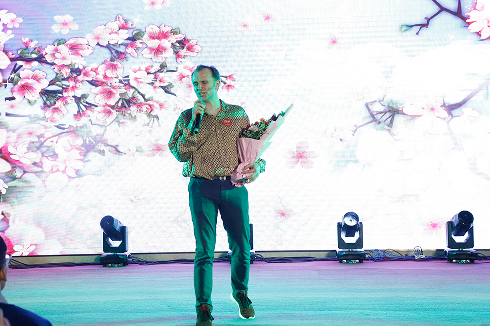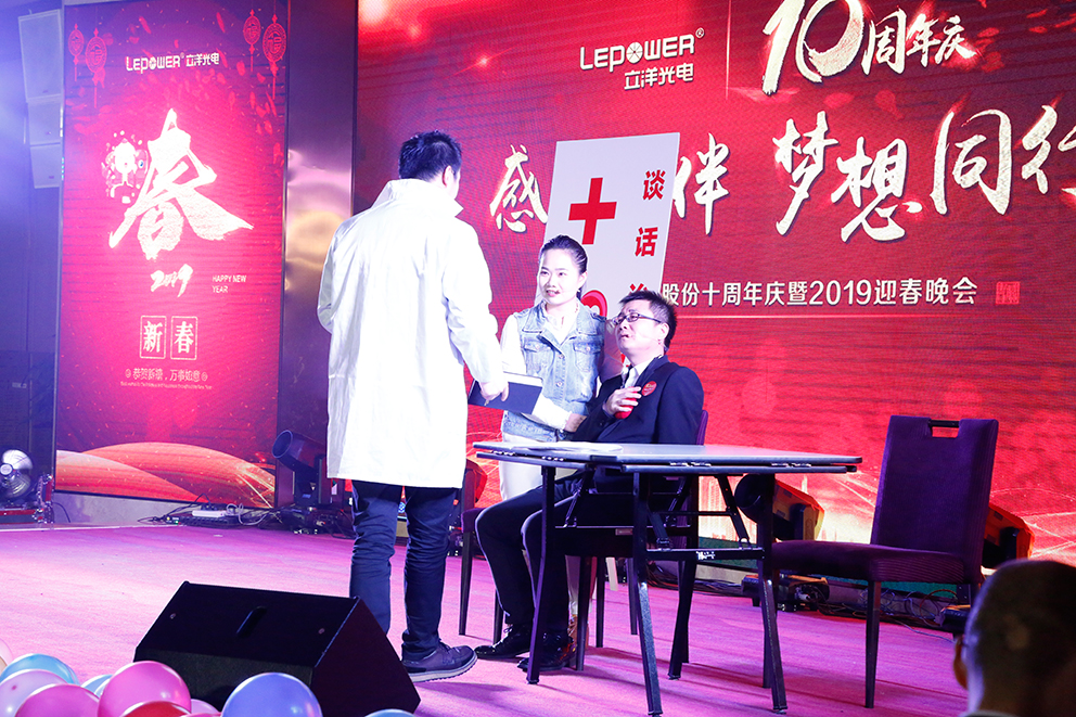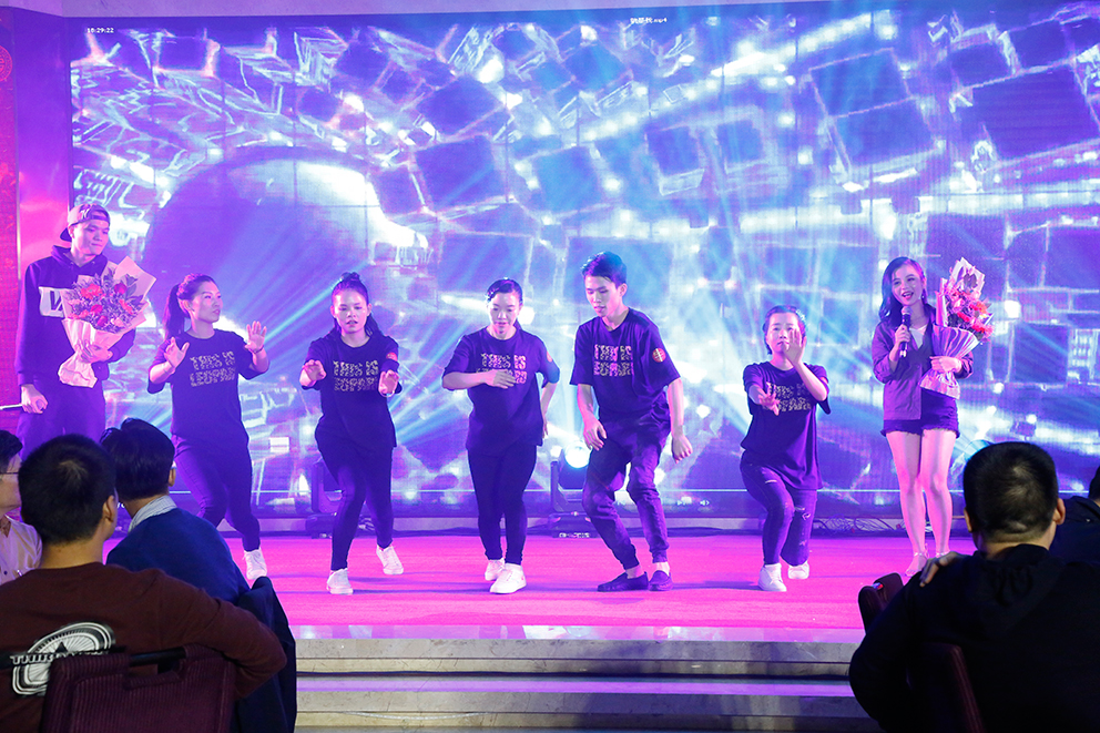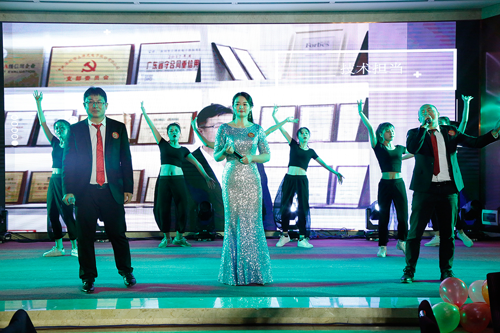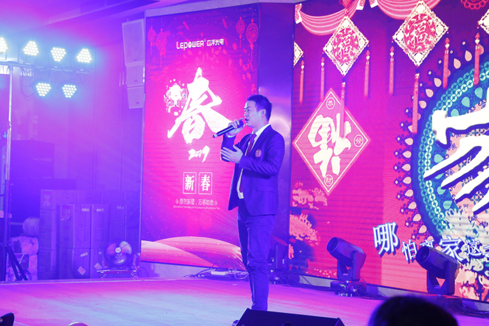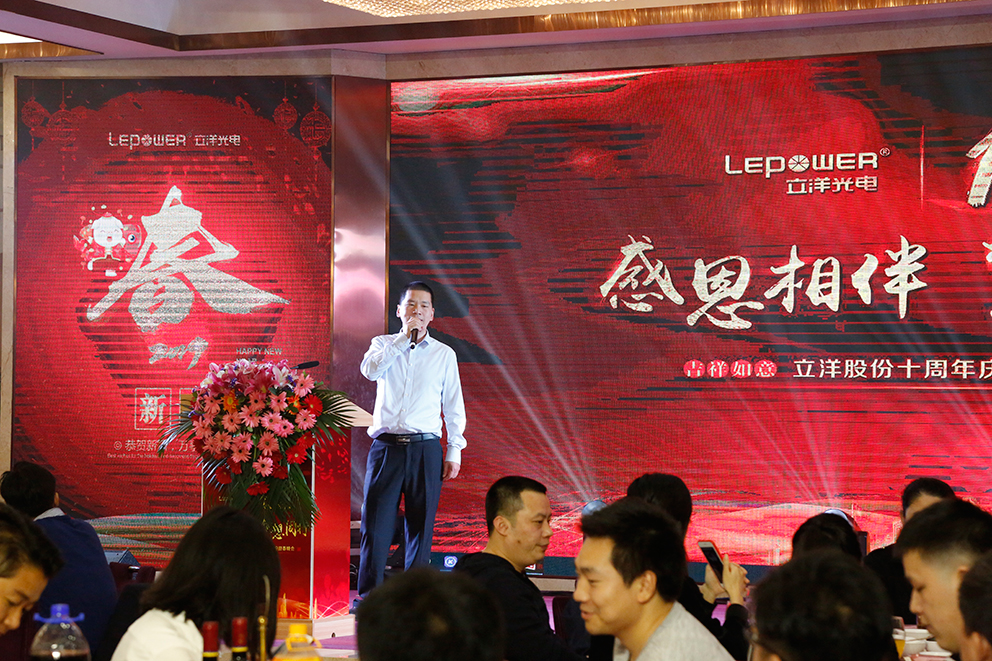 晚会在华美的开场舞《繁花似锦》中正式拉开帷幕。在全场热烈的掌声中,立洋股份董事长屈军毅先生上台致辞。屈董表示,回首公司过往十年的点点滴滴,他百感交集,公司十年来由小变大、由弱变强,离不开供应商、客户朋友以及全体员工的支持和努力。在当前严峻的市场形势下,公司上下齐心、共同努力,经营业绩稳中有升。同时,他提出在新的一年里,我们要继续坚持“技术创新、品质至上”的方针,在客户服务上、产品性价比上做到极致,从而为客户创造价值,为员工创造福利,为社会发展作出贡献。