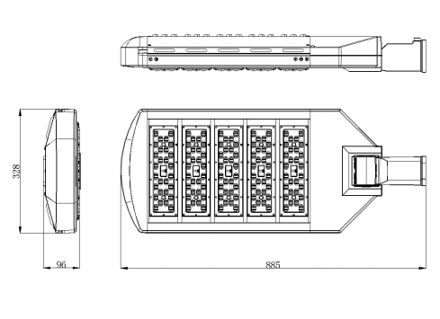 LED路灯L03B灯珠采用多晶封装,光效高,性能稳定,低光衰,50W-300W多种瓦数可选,整灯光效达到了180lm/W以上,搭载百叶窗设计,保证灯具散热,延长灯具使用寿命,可提供定制化的需求服务。
