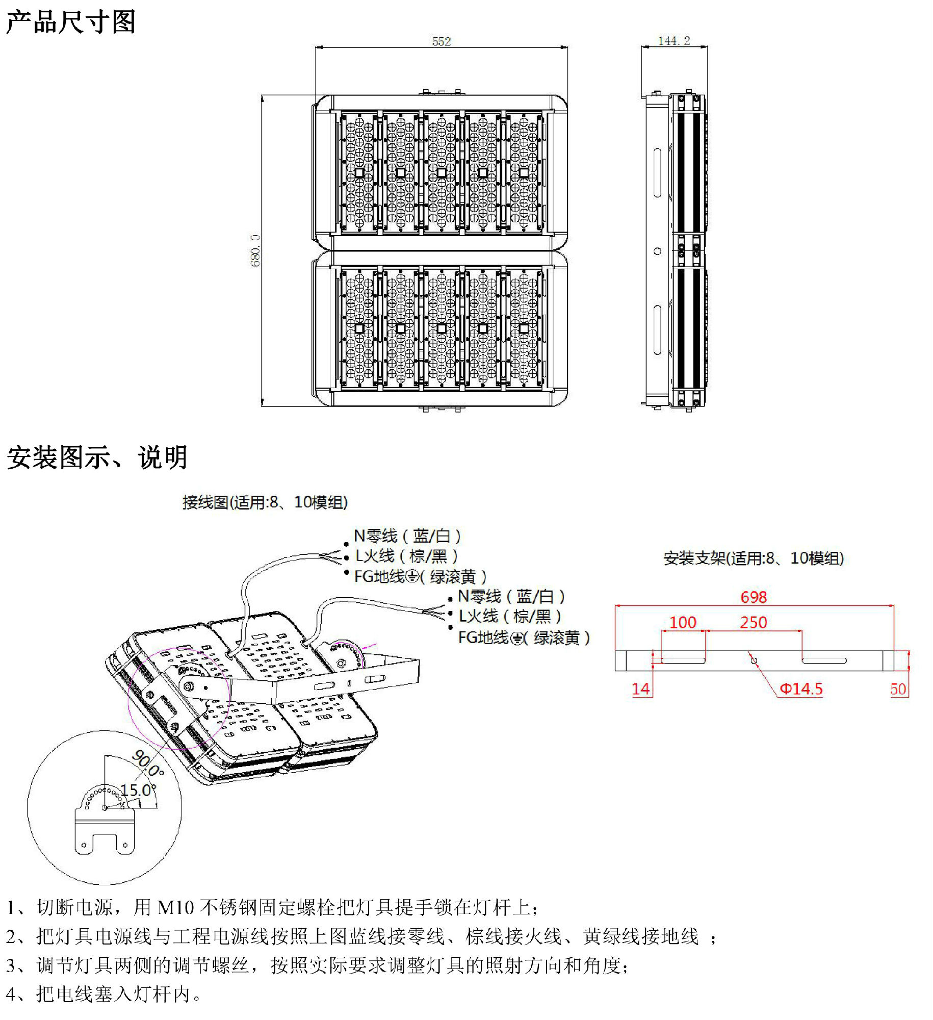■ 灯珠采用多晶封装,光效高,性能稳定,低光衰,无死灯。